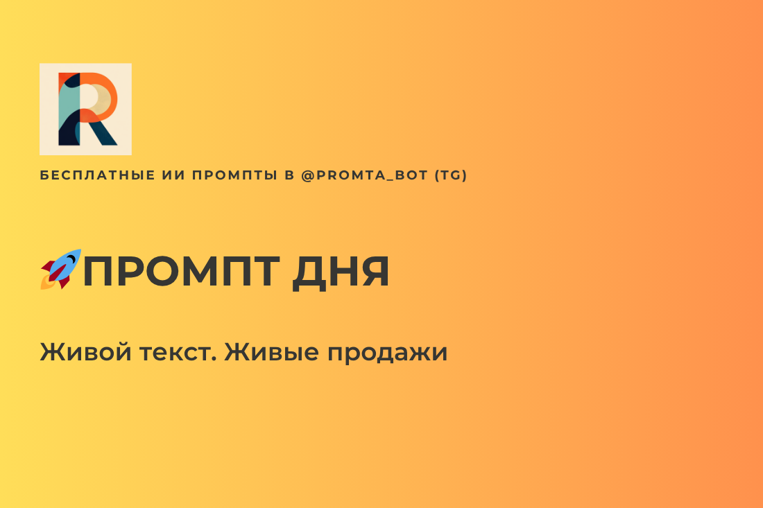 Например, в боте @promta_bot можно получить промпт под любую задачу: заголовки, подзаголовки, варианты CTA, структуры постов и писем. Это удобно, когда нужно быстро получить несколько рабочих вариантов и протестировать их в реальных условиях.