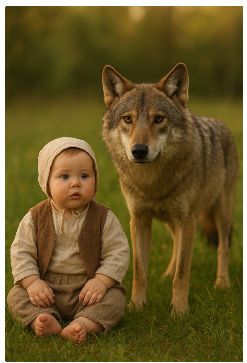 Волчица-мать долго уговаривала свою дочь отдать человеческое дитя.