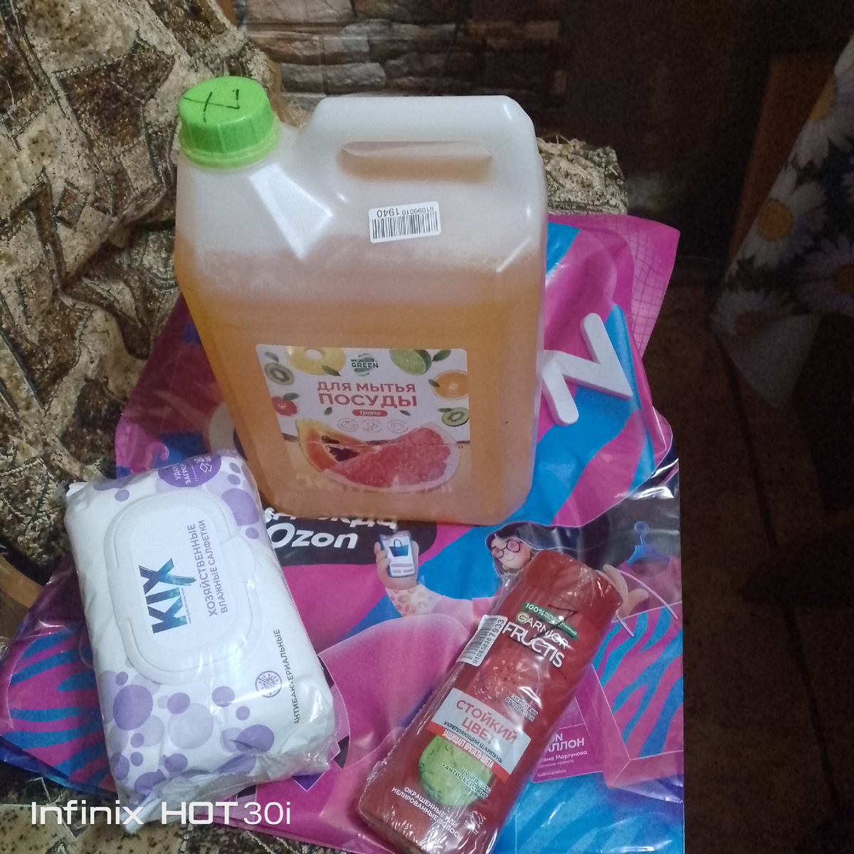 Здравствуйте, мои дорогие подписчики , читатели и все, кто случайно зашёл на канал! Не проходите мимо, подпишитесь! 💕 Уже вечер, отдыхаем, но решила написать несколько строк про заказы с Озона. Иваныч, по дороге домой заехал и забрал. Получили мы 5 литруху жидкости для мытья посуды, давно отказалась от маленьких бутылочек, так выгоднее! Салфетки хозяйственные. И шампунь для волос. И ещё одну банку горошка( 94 рубля), попробовать, что за качество у такой цены. ( Днем раньше пришла упаковка из трёх банок, тот горошек - написано, во всяком случае, без сахара). Завтра( в планах) приготовить оливье. Давно хотела такой шампунь, пользовались таким, потом перешли на подешевле, но всё- таки снова возвратилась к нему снова. Что скажу, всё нужное, как всегда, мы довольны. Как хорошо, что можно заказать и получить то, что хочется и то, что надо именно нам! ***** Смотрим фильм "Москва слезам не верит"- наша классика. (21.27.- время московское). Как говорил Гога, он же Гоша, он же Геор