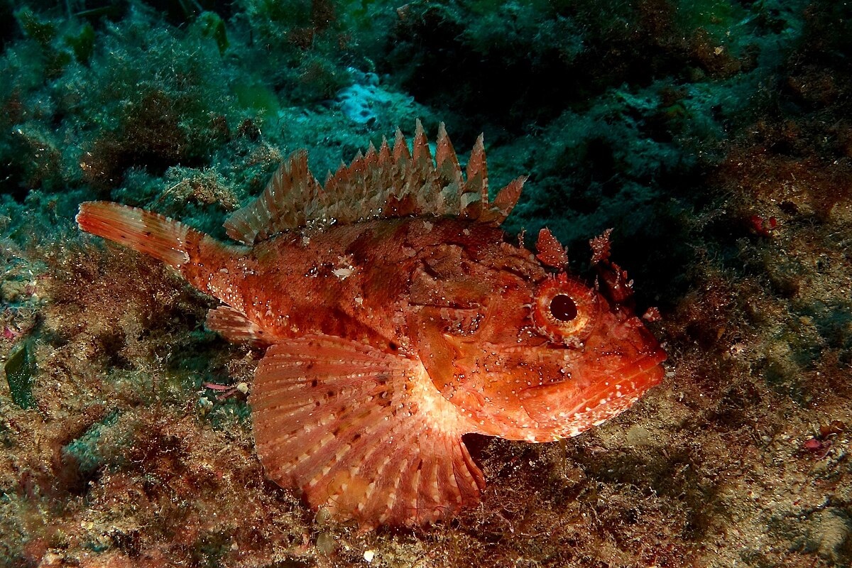 Черноморская скорпена, также известная как ёрш (лат. Scorpaena porcus), – это небольшая, но весьма примечательная рыба, обитающая в Черном и Средиземном морях. Своим необычным внешним видом и ядовитыми шипами она заслужила репутацию опасного, но в то же время интересного обитателя морских глубин. Полное описание: Скорпена-ёрш – это небольшая рыба, обычно не превышающая 20-25 см в длину. Тело у нее коренастое, покрытое костными пластинками и шипами. Голова большая, с крупным ртом, направленным вверх, и выразительными, выпуклыми глазами. Окраска скорпены очень разнообразна и зависит от окружающей среды. Она может быть коричневой, серой, красноватой, с темными пятнами и полосами, что позволяет ей идеально маскироваться на дне. Главная особенность скорпены – это ее ядовитые шипы, расположенные на спинном, анальном и брюшных плавниках. Укол этими шипами очень болезнен и может вызвать отек, покраснение, жар и даже лихорадку. Яд скорпены не смертелен для человека, но требует немедленной мед