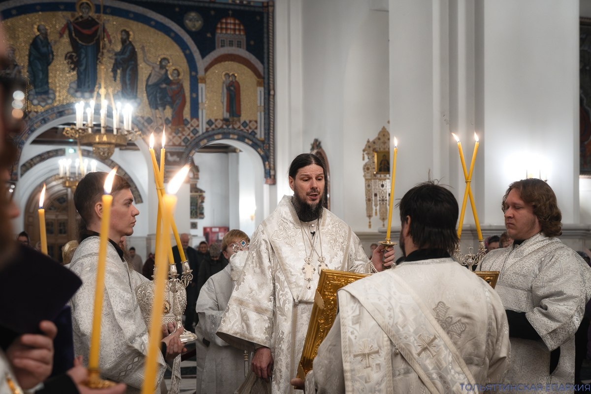 Канун Собора Архистратига Михаила и прочих Небесных Сил бесплотных: архиерейское богослужение в кафедральном соборе Тольятти 20 ноября 2025 года вечером, в канун Собора Архистратига Михаила и прочих Небесных Сил бесплотных, епископ Тольяттинский и Жигулёвский Нестор совершил всенощное бдение в Преображенском кафедральном соборе Тольятти. По окончании богослужения епископ Нестор обратился к верующим с архипастырским словом о том, в чём заключается особое превосходство человека перед ангелами. Подробнее: https://tltepar.ru/novosty/2025/11/kanun-sobora-arkhistratiga-mikhaila-i-prochikh-nebesnykh-sil-besplotnykh-arkhiereyskoe-bogosluzhenie.html