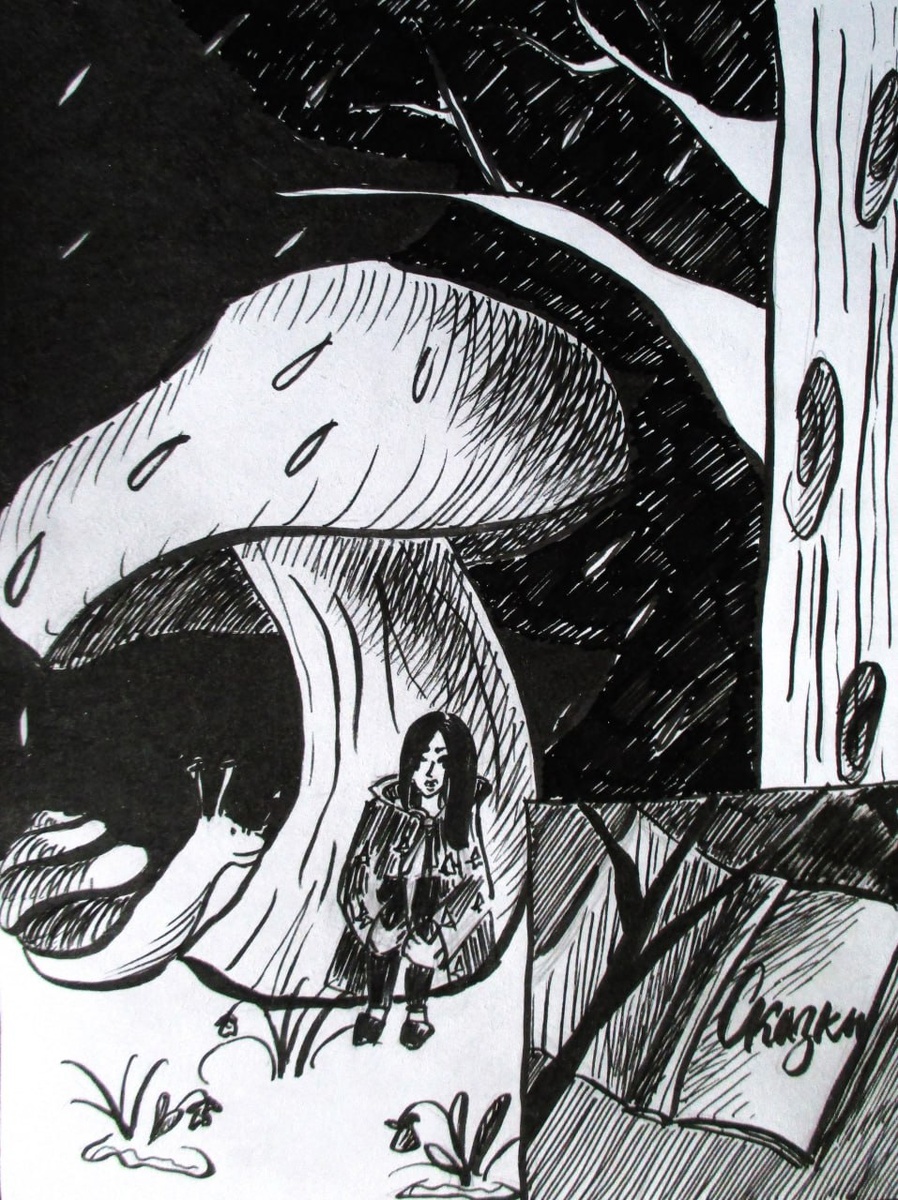 День 4 - книга Совсем уже почти повесив нос от испортившейся погода и бессмысленных скитаний по тёмному лесу. Ева заметила улитку под большим-большим грибочком, которая укрывалась и пережидала непогоду под его огромной шляпкой. Девушка решила попроситься пересидеть какое-то время рядом. Улитка ничего не ответила, но и возражений не высказала. Решив что молчание - знак согласия, Ева уселась рядышком. Вдруг она заметила книгу, которая была уже сильно потрёпана и намокла от дождя, многое было невозможно разобрать, но Ева поняла что здесь собраны сказки о мифологических животных, например, о единороге. #folktaleweekbook #folktaleweeknight #folktaleweek #folktaleweek2025 #folktaleweek25