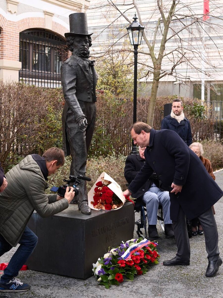 В самом центре Парижа, на набережной Бранли, у Российского духовно-культурного православного центра открыли памятник Александру Сергеевичу Пушкину. Церемония получилась тёплой, камерной и по-настоящему символичной. Посол России во Франции Анатолий Мешков представил монумент вместе с его автором — скульптором, академиком РАХ Александром Таратыновым. Но главным украшением события стало присутствие праправнука поэта, Александра Александровича Пушкина, который вместе с супругой приехал на церемонию. Он словно соединил эпохи — от пушкинской поры до сегодняшнего дня. Среди гостей были дипломаты, представители духовенства, благотворители, российские соотечественники, живущие во Франции, и французские почитатели русской культуры. В своём обращении Посол Мешков подчеркнул, почему этот памятник важен именно здесь, в Париже: «Хотя А.С. Пушкин никогда не бывал в Париже, Франция занимала особое место в его жизни. Лицеистские друзья прозвали его “французом”. С детства он свободно владел французским