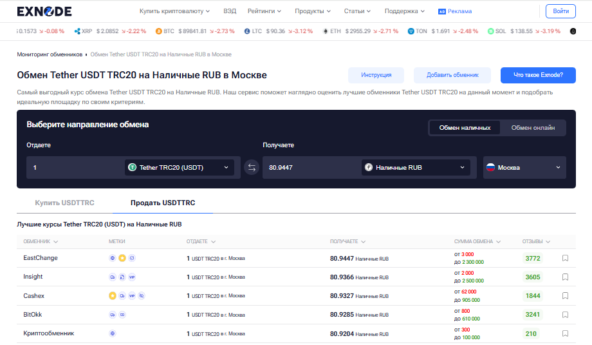 Выбор надежной точки — задача номер один. Сегодня проверить добросовестность любого сервиса стало значительно проще. Например, на специализированном сайте Exnode каждый пользователь может самостоятельно изучить отзывы и репутацию практически любого криптообменника, что помогает сразу отсеять сомнительные конторы. Это особенно важно, когда речь идет о живых деньгах.