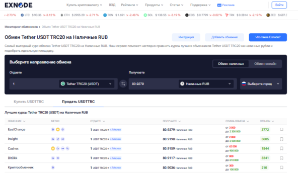 Первым делом необходимо провести самостоятельный мониторинг. Недостаточно просто выбрать обменник из какого-либо топа 5 криптообменников. Зайдите на независимый агрегатор, например, Exnode, чтобы выполнить три ключевых действия: