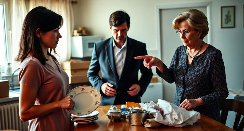 Свекровь вошла следом и принялась вытаскивать из коробок посуду, рассматривая каждую вещь.