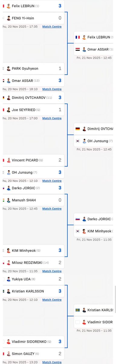 В ответ на пост 👁️ Результат второго круга и расписание на третий на WTT Star Contender Muscat 2025! При победе в 1/8 в этот же день сыграется четвертьфинал. Элизабет Абраамян с Zeng Jian в 11:00 по местному, Владимир Сидоренко с Карлссоном в 11:35! Время по МСК -1.