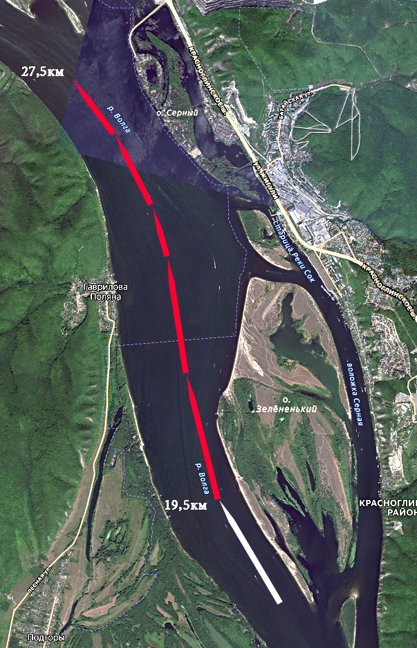 В предыдущей статье, после завершения экскурсии по «Дому со слонами» (даче купца Головкина), мы возобновили виртуальное путешествие на круизном лайнере вверх по Волге. Наш теплоход дошёл до Красноглинского района города Самары – мы остановились около острова Зелёненького напротив Коптева оврага. Сегодня продолжим плавание до Жигулёвских ворот, где находится самая высокая вершина Сокольих гор – гора Тип-Тяв высотой 282 метра. Описывая маршрут от Самары вверх по Волге, я практически не упоминал правый берег – пологий, на котором за растительностью невозможно что-либо рассмотреть. Напротив острова Зелёненького рельеф берега начинает меняться – над кронами деревьев появляются возвышенности. На правом берегу, напротив левобережного Коптева оврага находится пристань Подгоры. У пристани пришвартован теплоход местных линий «Москва». Само село Подгоры расположено в трёх километрах от пристани, административно относится к Волжскому району Самарской области. Через 1 километр выше по течению справ