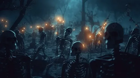 Ровно в полночь земля на кладбище зашевелилась. Из свежих и старых могил стали выползать скелеты. Они не были жуткими порождениями ада — их движения были плавными, почти грациозными. Костлявые пальцы смыкались с другими, черепа поворачивались друг к другу с безмолвным пониманием. Они выстроились в круг и начали танцевать.