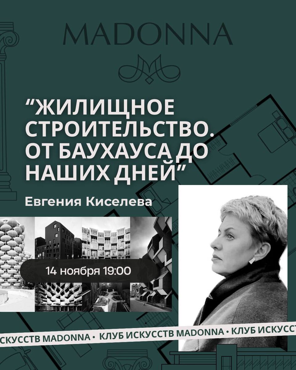 Лекция №1 в рамках клуба искусств MADONNA — «От Баухауса до современности» 14 ноября, 19:00 Лектор: Евгения Киселёва — искусствовед, художник, преподаватель, которая соединяет академическое знание и живой творческий взгляд. На первой встрече мы отправимся в путешествие от Баухауса до искусства XXI века: • Как рождаются стили и почему они влияют на наше восприятие. • Как художники и архитекторы меняли образ жизни и мышления. • Почему именно сегодня важно понимать язык формы, цвета и композиции. • И как искусство XX века до сих пор определяет наш визуальный мир — от архитектуры и моды до дизайна и кино. 🎟 Вход по регистрации https://forms.gle/yYB48G7A7w9scfyL8, стоимость 1500р. Ждем вас по адресу ул. 50 лет Октября 63Г.