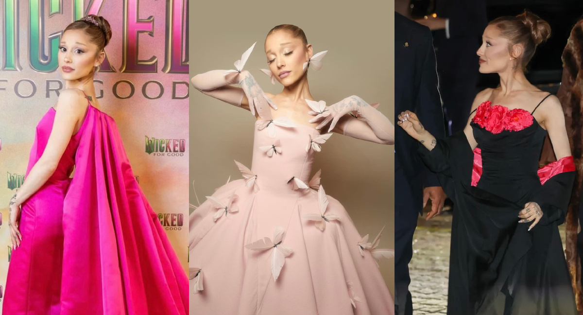 Париж любит эффектные премьеры, но то, как Ариана Гранде открыла пресс-тур фильма Wicked: For Good, стало настоящим модным прологом к большой магии. Её выходы — это не просто стилизация под образ Глинды, это продуманная перезагрузка собственной эстетики, где архивы старого Голливуда встречаются с современной романтикой. И за каждым движением стоит Лоу Роуч, человек, который снова превращает Ариану в героиню своего идеального визуального романа. Первый аккорд — кастомное платье Robert Wun. Нежное, воздушное, театральное, с россыпью 3D-бабочек и длинными розовыми перчатками, словно снятое с кадра мечтательной сказки. Полукруглая линия лифа, полный объём юбки, светящиеся оттенки — всё работает на ту самую атмосферу удивления, которую и несёт фильм. Ариана вышла на сцену NBC в этом платье, и даже на видео видно, как бабочки на её серьгах действительно будто «шевелятся» при каждом движении. Это идеальный симбиоз исполнительницы и персонажа, которого она играет. Затем — ярко-розовое Given