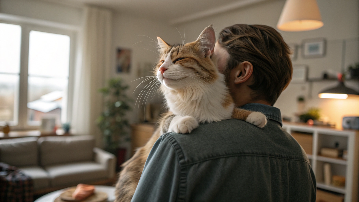Многие думают, это просто милая привычка. На самом деле за этим стоит целый набор причин, связанных с инстинктами, психологией и физиологией. Сегодня разберу, что движет кошкой, когда она выбирает именно ваши плечи. Кошка — хищник, который привык контролировать пространство. В дикой природе высокие точки означают безопасность и обзор. С высоты видно приближение опасности, легче выследить добычу, проще уйти от конфликта. Ваши плечи — это движущаяся смотровая вышка. Кошка получает максимальный обзор, не тратя усилий на прыжки по мебели. Она видит всю квартиру, наблюдает за другими животными, следит за вами. При этом не расходует энергию на удержание позиции — вы её носите сами. Заметила закономерность: кошки чаще запрыгивают на плечи в новой обстановке или когда в доме появляются незнакомцы. Одна владелица рассказывала, что её кот сидел на плечах всю неделю после переезда. Как только освоился, слез и больше не запрыгивал. Ему нужна была высота для контроля незнакомой территории. Плечи и