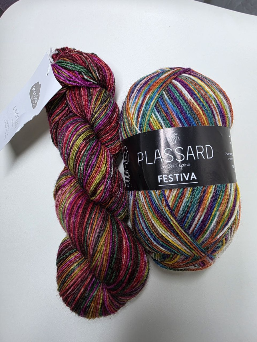 Муж привез из Франции пару моточков на носки. У нас такую пряжу не видела, буду срочно вязать. Вообще у меня в планах были новогодние носочки, но кому нужны эти планы? 😁