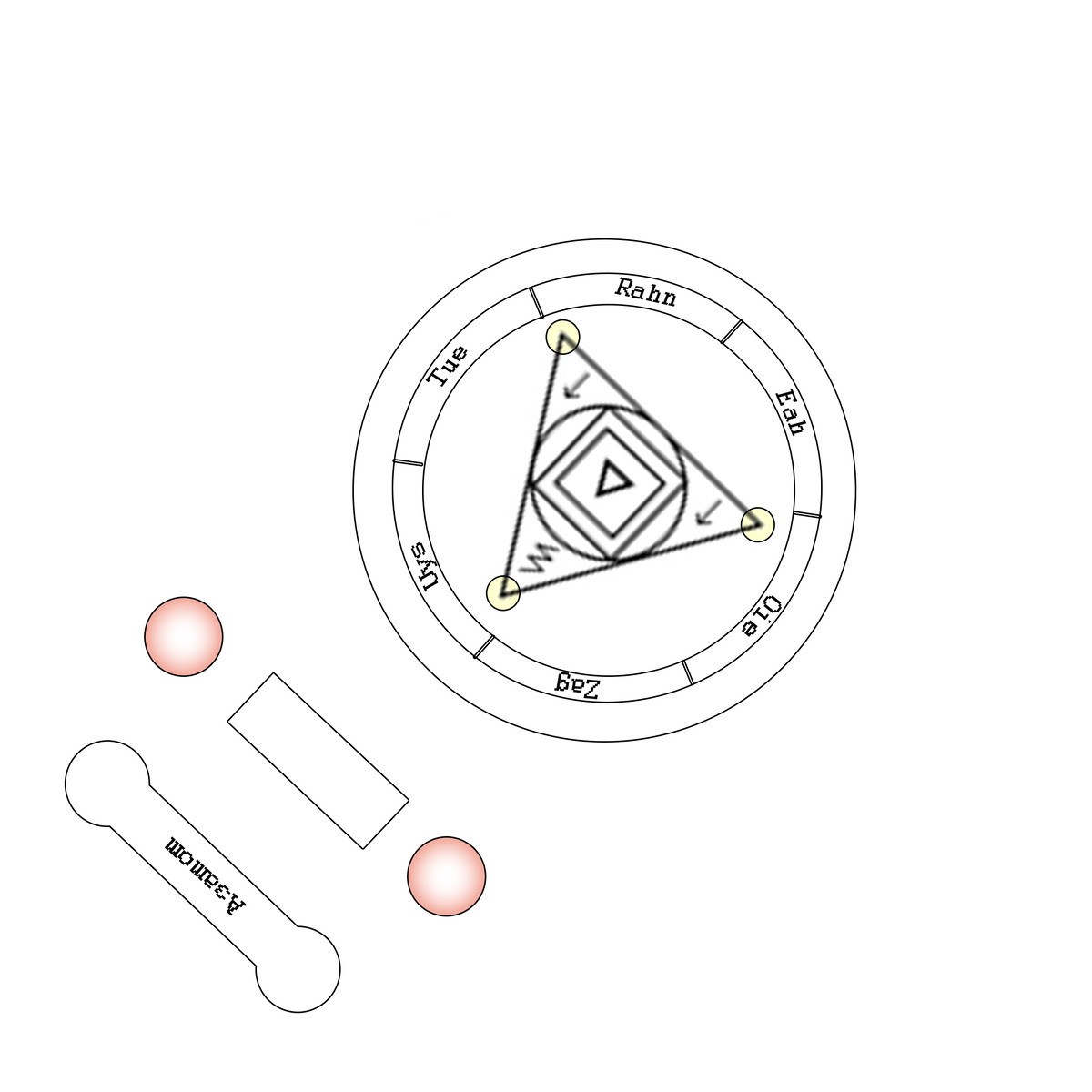 #серая_книга Воздвигни сей храм из черного камня с печатью и сигилом, обратив его на юго-запад, перед аркой входа поставь трон, где должен сидеть Древний, когда явит себя. Помни, лишь восход черной луны над вратами откроет их. Найди безумца, рожденного между светом и тьмою, и посади его на трон вырезав на лбу сигил Азатота, только через него будет говорить Азатот. Возьми двенадцать дев, и пусть они исполняют хаотические танцы, и каждая несёт на себе печать танцующего божества, вокруг печати. Ты же встань в круг, возведя знак Вур, произнеси нараспев следующее 6 раз: «Натх игла каготх ра Айэ Зотхтот неду (соверши знак Киш) Йегн фхрант гау Ис танр ех сох! Нарум арум нум! (повторить танцорам) (соверши знак Сох)» Танцоры должны к этому времени войти в унисон, двигаясь плавно и равномерно. Соверши знак Уом, подойдя к сумасшедшему. Коснись его этим знаком, произнеся: «Зоатхотх айэ уоре Нгах, Зоз кулус ут ине Су ух хле раг ис Мао ргл ехрн йют Ассат ассат ассат!» Удались назад, и припади ниц пе