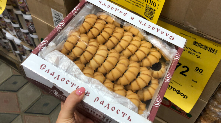 Начну, пожалуй, с самого приятного — сладостей. В продаже появилось печенье «Курабье Люкс» с фруктовой начинкой. Упаковка большая, вес 900 граммов. Производитель — город Пенза. Печенье рассыпчатое, ароматное, с мягкой сладкой начинкой — отличный вариант к чаю или для праздничного стола. Стоимость вполне доступная — 148,90 рубля.