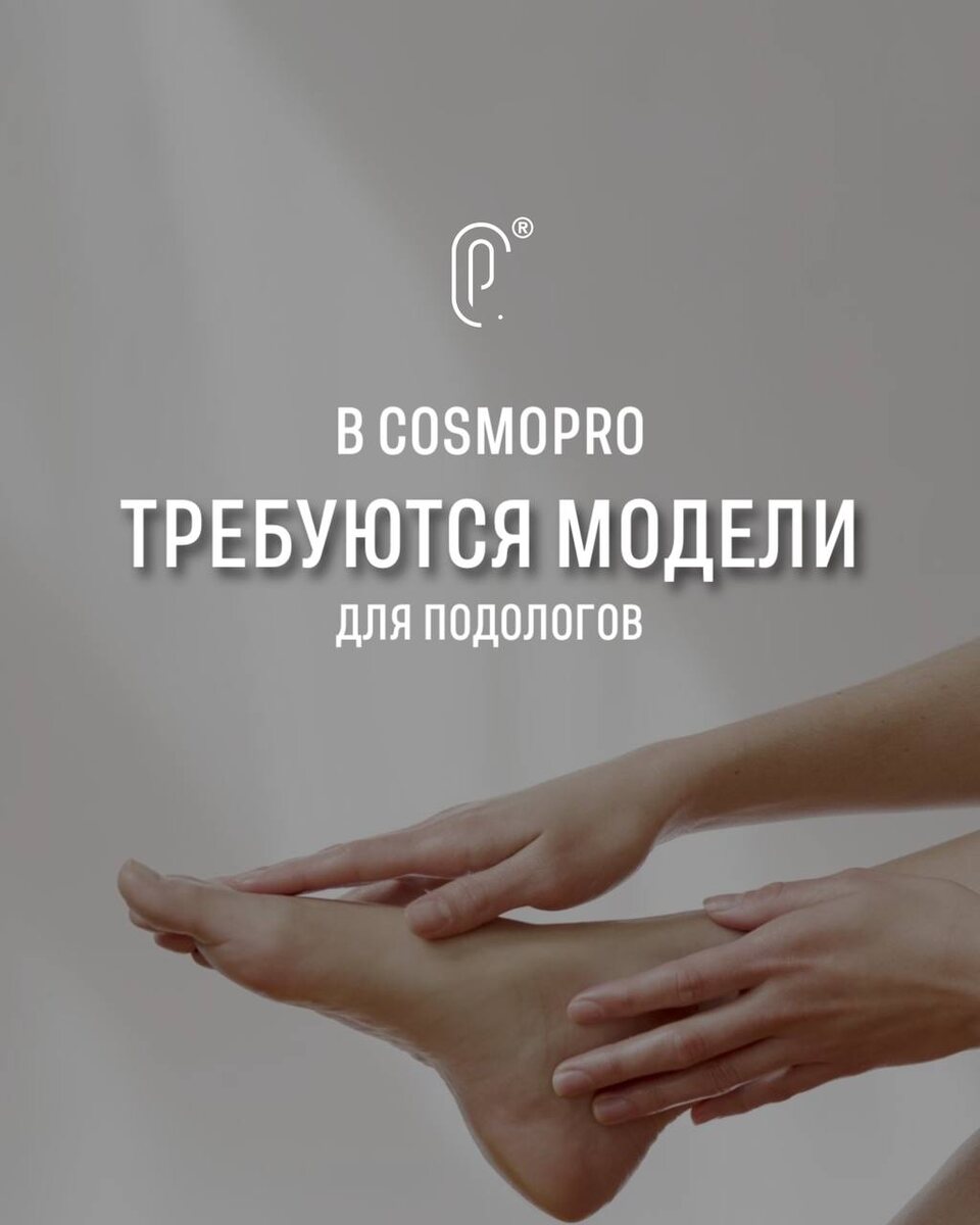 ИЩЕМ МОДЕЛЕЙ НА ПОДОЛОГИЮ Клиника COSMOPRO приглашает моделей с вросшими ногтями (в том числе сложные случаи) для работы опытных подологов. Что вас ждёт: • Приём у квалифицированных специалистов • Современные методы коррекции вросшего ногтя • Безопасно, стерильно Подходит, если у вас: • Вросший ноготь на одном или нескольких пальцах • Есть воспаление, дискомфорт, боль • Ранее были неудачные попытки коррекции Всex желающих просим присылать фото ТОЛЬКО в Telegram: +7 968 788 55 22 *При отклике пришлите фото ногтя для предварительной оценки