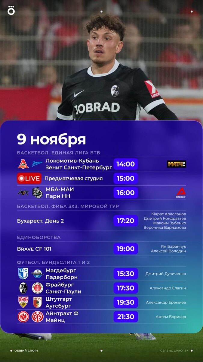 Баскет, единоборства, Лига 1, Серия А, первая и вторая Бундеслига. А еще аргентинское Суперкласико в удобное время 🤩 Такое мы смотрим. Переходи ➡️ https://okko.tv/s/t6q