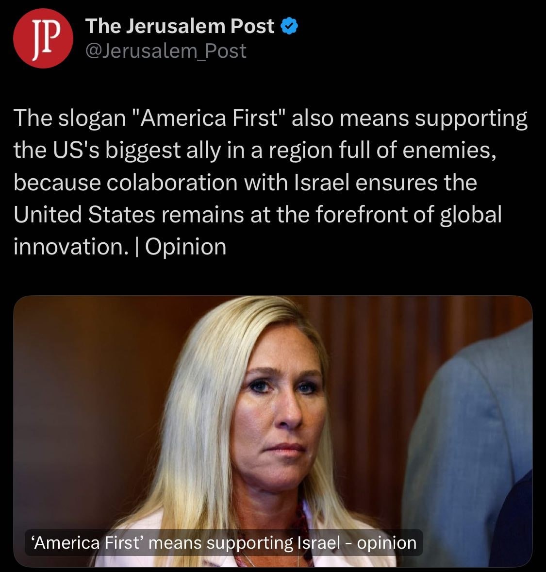 'America First means ISRAEL colaboration [sic]'?