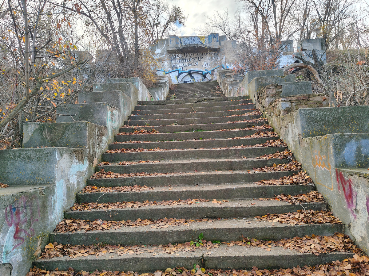 Здравствуйте, дорогие читатели, сегодня немного пройдёмся по берегу нашей Великой Волги вдоль набережной, правда, дело было в конце октября, но, думаю, от этого плохо не будет. Просто вспомним более тёплые дни. На работе есть несколько заядлых рыбаков, и они очень часто рыбачат на Волге. После рассказывают, какое это прекрасное занятие, да и ещё виды на реку замечательные, ну прям романтика. Вот и я решил после обзора по лестнице от кафе «Камелот» прогуляться по берегу Волги. За суетой дней я давно не был здесь, хотя раньше и особо по детству, занимаясь в секции лёгкой атлетике на «Стали», бывал здесь, и в летние дни купались после тренировок в своё удовольствие, тем более здесь было что-то типа дикого пляжа, и временами людей было немало — кто решил искупаться в Великой реке. Теперь, бродя по берегу среди камней и тины, я поражался, насколько берег грязен, и, наверное, здесь никто никогда не убирает. Кстати, я всегда задумывался, а что там ниже по течению, где-нибудь под Астраханью,