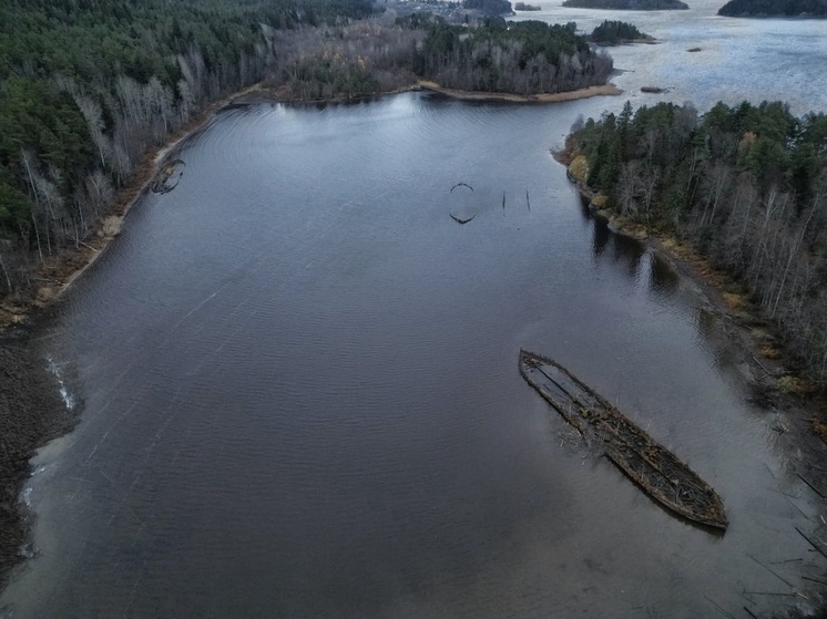 "МК в Карелии", 8 ноября 2025г. : "Необычное зрелище предстало перед жителями и гостями Карелии: озеро Янисйоки, впадающее в Ладожское озеро, из-за сильного обмеления обнажило останки старинных судов. Уникальные фотографии этого “кладбища кораблей” были опубликованы в паблике Краеведческого клуба “Оберег”. Озеро Янисйоки, расположенное недалеко от поселка Хийденсельга, служило важным транспортным путем в 1920-30-х годах прошлого века. По его водной глади деревянные баржи перевозили различные грузы. Сегодня эти суда покоятся на дне, но, благодаря рекордному обмелению водоема, стали доступны для обозрения. По словам местных жителей, эти баржи принадлежали финнам и были затоплены в 1944 году во время эвакуации с Ладоги. Предполагается, что суда использовались для перевозки камня. Обнаружение затонувших кораблей стало настоящим артефактом, свидетельствующим о бурной истории этого края." ****************************************************************************************** Вообще-то, в