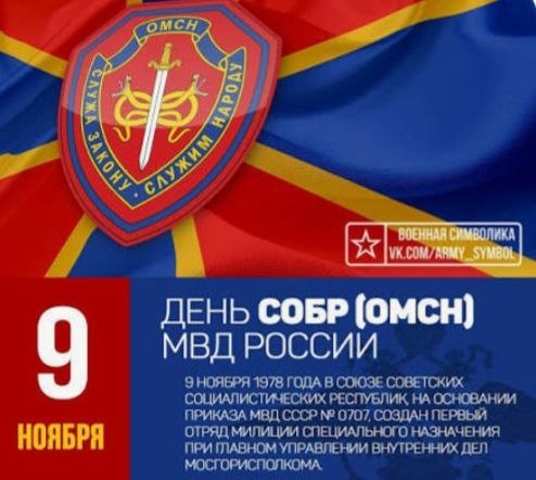 День образования специальных отрядов быстрого реагирования. СОБР формировался на базе уже существовавших отрядов милиции специального назначения. Первый из них был образован 9 ноября 1978 года в ходе подготовки к Олимпийским играм в Москве. В отличие от ОМОН, основной задачей которого является обеспечение общественного порядка, СОБР создавался целенаправленно для борьбы с организованной преступностью. В настоящее время эти подразделения обезвреживают особо опасных преступников, освобождают заложников, борются с террористами и экстремистами.