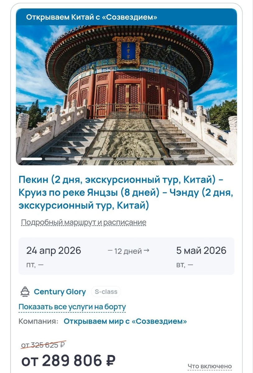 ☝️ Ближайший круиз в Китай