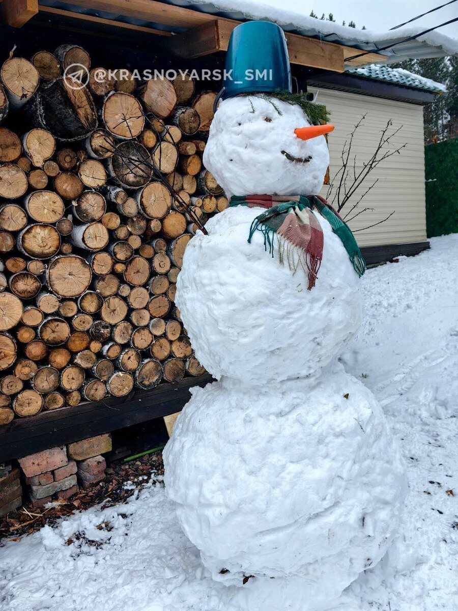 ☃️Время лепки снеговиков пришло В Емельяновском районе выпал мокрый снег. Жители делятся фото первого снеговика сезона. ____ 🔴Оставить обращение ✏️ 🔴Мы в MAX