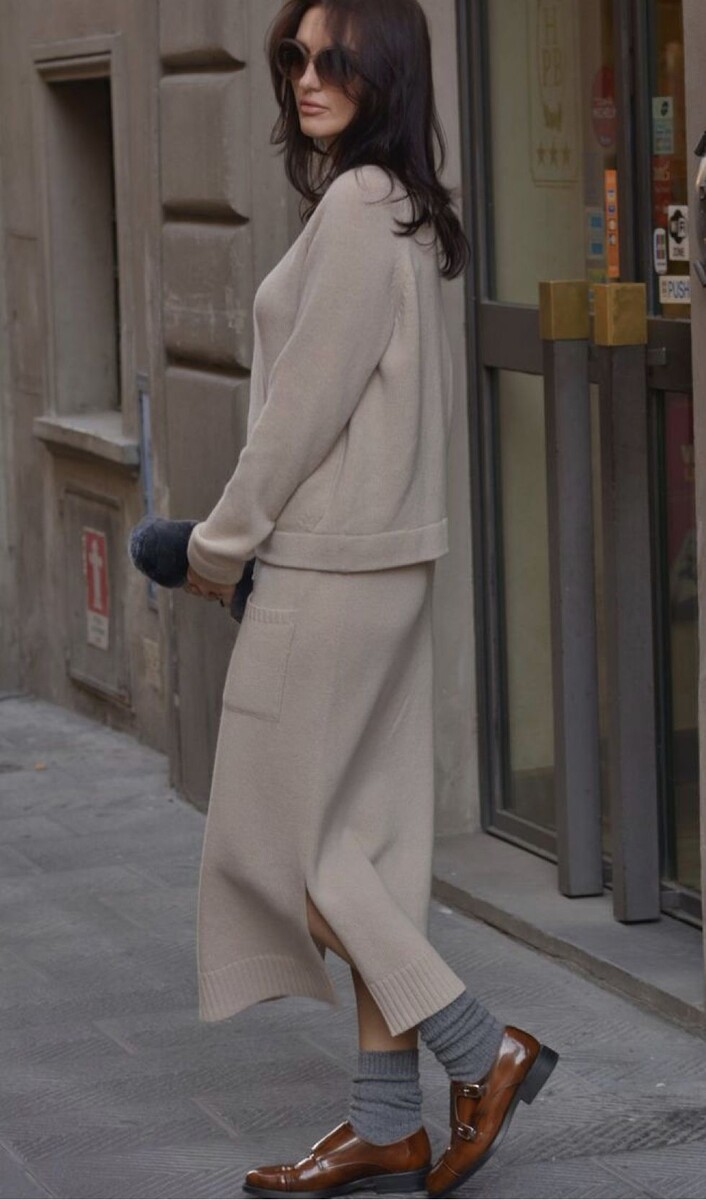 Почему именно трикотажная миди юбка — королева зимнего гардероба