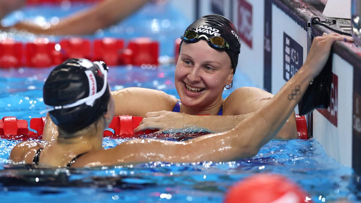 В полуфинальном заплыве дистанции 100 брасс Евгения Чикунова показала 11 результат мирового сезона - 1:04.98 Лидером сезона короткой воды по прежнему остается Kate Douglass - 1:02.90 📸 Maddie Meyer / Staff / Getty Images Sport / Gettyimages.ru