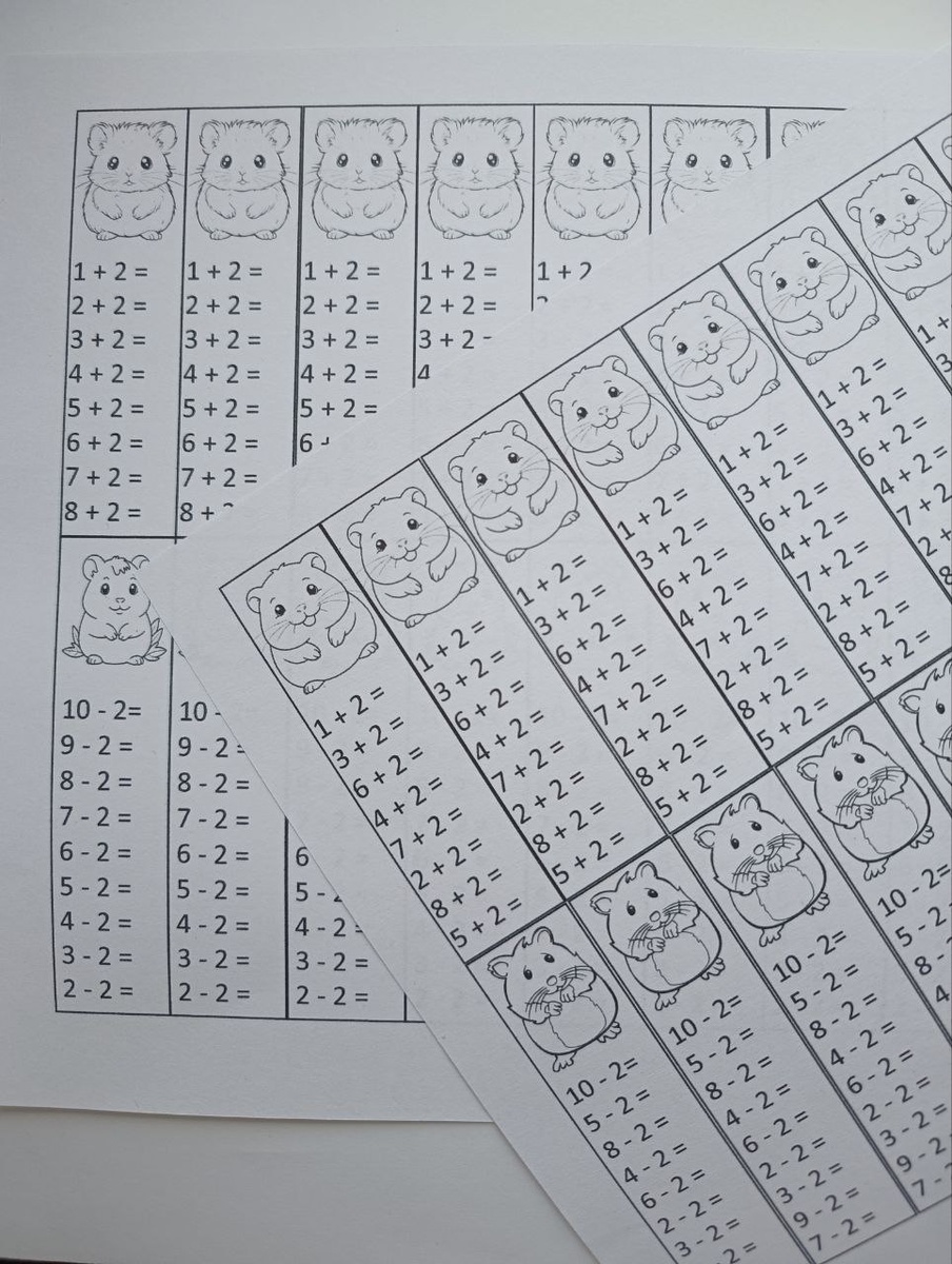 Вклейки в тетрадь (на поля) по математике +2 и - 2 (по порядку и в разнобой)