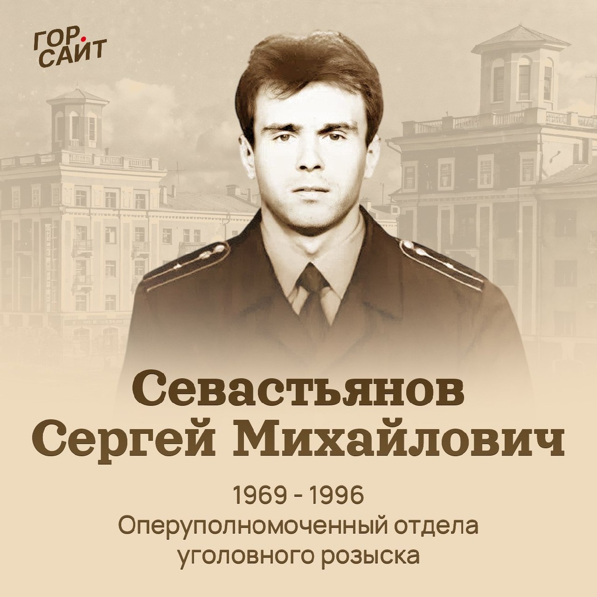 #Мемориальные_доски_Полевского Родился 29 августа в городе Алабуга Красноармейского района Челябинской области. С 27 декабря 1994 года поступил на службу в органы внутренних дел на должность оперуполномоченного отделения уголовного розыска города Полевского. 13 января 1996 года в 13:45 в дежурную часть Полевского городского отделения милиции поступило тревожное сообщение. Жительница города сообщила, что ее сосед, находясь в нетрезвом состоянии, угрожает ей расправой и пытается взломать дверь. На место происшествия был направлен наряд милиции, в составе которого был младший лейтенант милиции Севастьянов Сергей. По прибытии на место происшествия, младший лейтенант милиции Севастьянов представился и попытался прекратить хулиганские действия пьяного дебошира, однако последний неожиданно выстрелил из охотничьего ружья и смертельно ранил Сергея. В здании Отдела МВД России по городу Полевской была установлена мемориальная доска в честь погибшего сотрудника.