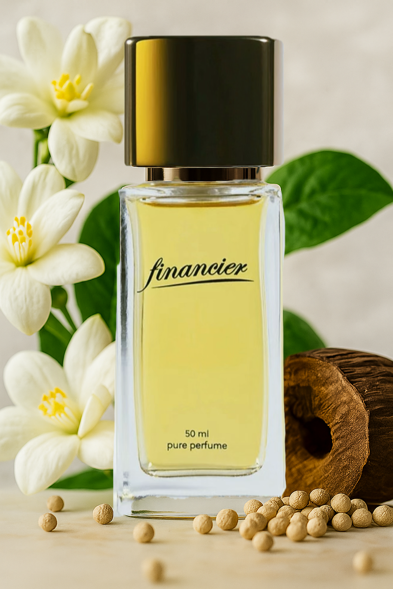 Богатый аромат заключён в лаконичный флакон с золотой крышечкой, зафиксированной магнитом. Изящный шрифт названия придаёт образу благородство. Здесь нет ни китча, ни излишнего аскетизма. Financier - это воплощение тихой роскоши. Верхние ноты сразу заставят людей обратить на вас внимание: пряность белого перца, крепость коньяка и томность сливы никого не оставят равнодушными. Ноты сердца также не сдают позиции — противоречивый жасмин, терпкие ягоды можжевельника, кардамон, лаванда, табак и перец черри создают сногсшибательный тандем, раскрывая аромат во всех его глубине и темпераменте. База - это уже поистине тяжелая артиллерия: уд, амбра, бензоин, пачули, ладан и замша точно дадут окружающим понять, кто тут главный.