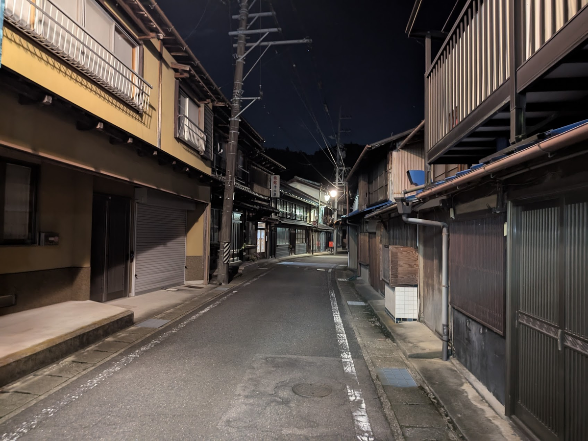 В Канаяме живёт так мало людей, что он выглядит как город-призрак и ночью, и днём. Через центр города течёт ручей, и дома строятся прямо над ним. Такое в Японии встречается нечасто, так что неудивительно, что именно этот городок решили взять за основу сеттинга игры. И ещё немного тематических фото из других мест Японии.