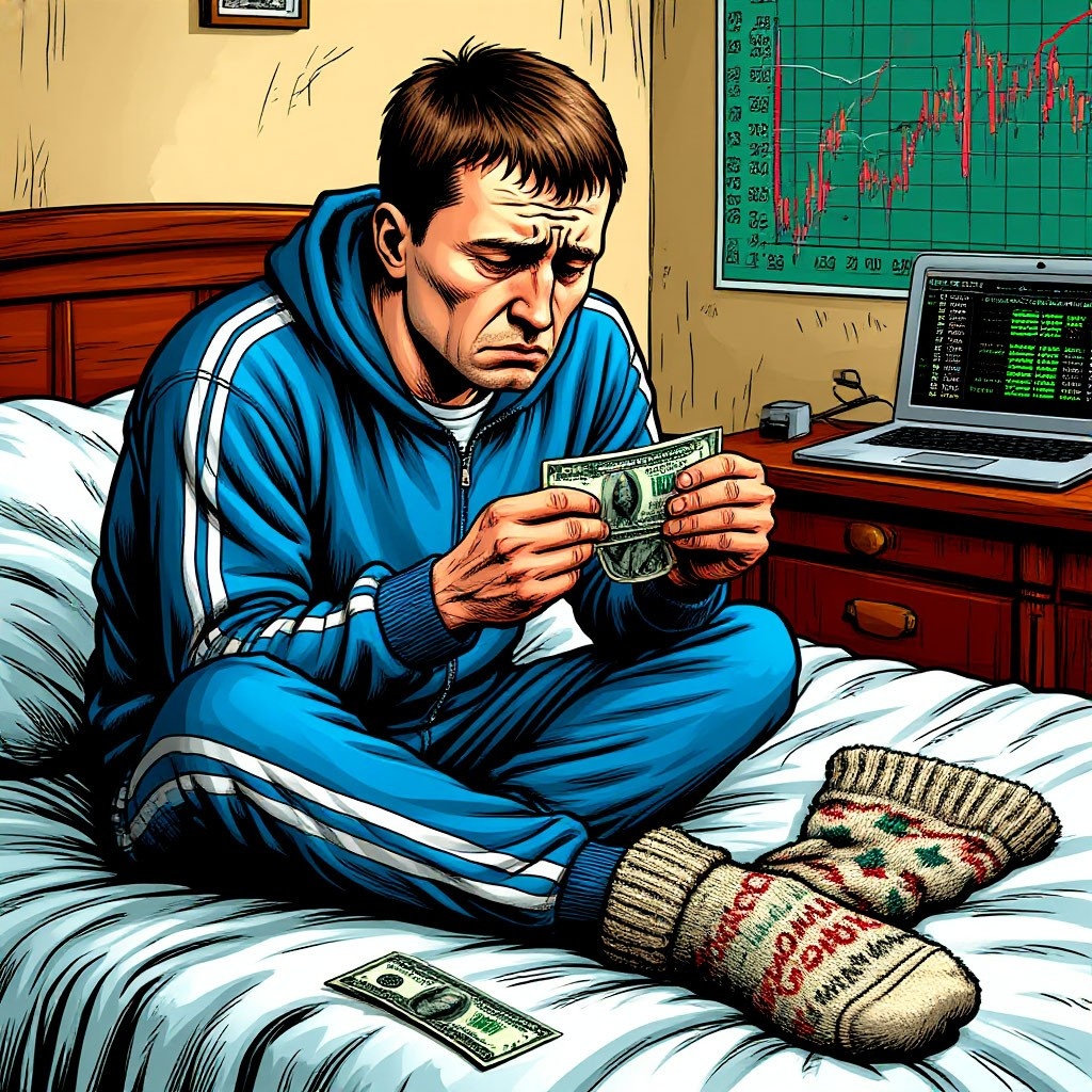 Открываешь ленту — все говорят про доллар. В лифте сосед, который раньше обсуждал только погоду, теперь шепчет: «А ты купил?». Кажется, если не купить долларов прямо сейчас, завтра проснешься в Северной Корее. Я тоже поддался панике и провёл эксперимент. Купил 100 долларов. И вот что из этого вышло. День первый. Чувство всемогущества Держу в руках зелёные бумажки. Чувствую себя героем «Волка с Уолл-стрит». · Смотрю на курс — мой капитал вырос на 3 рубля! · Решаю не тратить их ни на что бытовое. Они теперь — «подушка безопасности». · Моя «подушка безопасности» лежит в носке под матрасом. Очень надёжный банк. День третий. Первая паника Курс пополз вниз. Мои $100 превратились уже в 99.5, если пересчитать. · Открываю приложение банка каждые 10 минут. · Начинаю читать аналитические прогнозы. Понимаю, что не понимаю ни слова. · Осознаю, что моя «подушка безопасности» начинает пахнуть старыми носками и глупыми надеждами. День седьмой. Экзистенциальный кризис За неделю я заработал 15