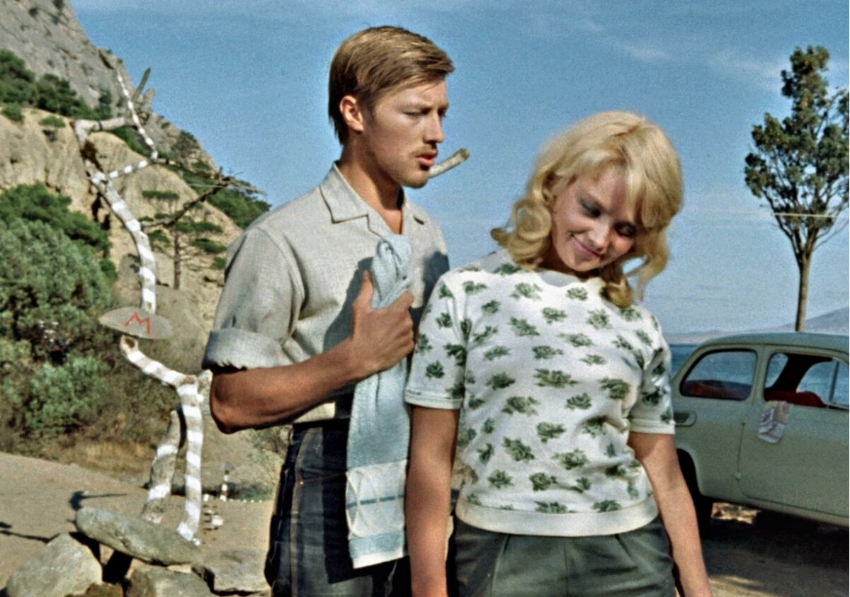 Джинсы давно стали для нас обычной повседневной одеждой. Но так было не всегда. В советское время купить настоящие джинсы было нелегко. Их приходилось «доставать» через знакомых и значительно переплачивать. В советских фильмах, снятых до 1980 года джинсы тоже были редкостью. Считается, что впервые советский зритель увидел фирменные джинсы на экране в фильме 1963 года «Три плюс два». Их носил персонаж Евгения Жарикова – Вадим. Это неудивительно. Ведь по сюжету он был дипломатом, а, значит, имел возможность купить импортный деним. Еще один модный образ – расклешенные джинсы на Трубадуре из советского мультфильма «Бременские музыканты». Мультик был показан в 1969 году и моментально покорил зрителей. Немалую роль в этом сыграл и внешний облик главных героев: Принцессы и Трубадура. А вот еще одни джинсы из комедии 60-х. Шурик носит укороченные штаны, похожие на джинсы. Но они явно не импортного производства, а, скорее, сшиты на заказ для съемок фильма. В музыкальной сказке «Новогодние пр