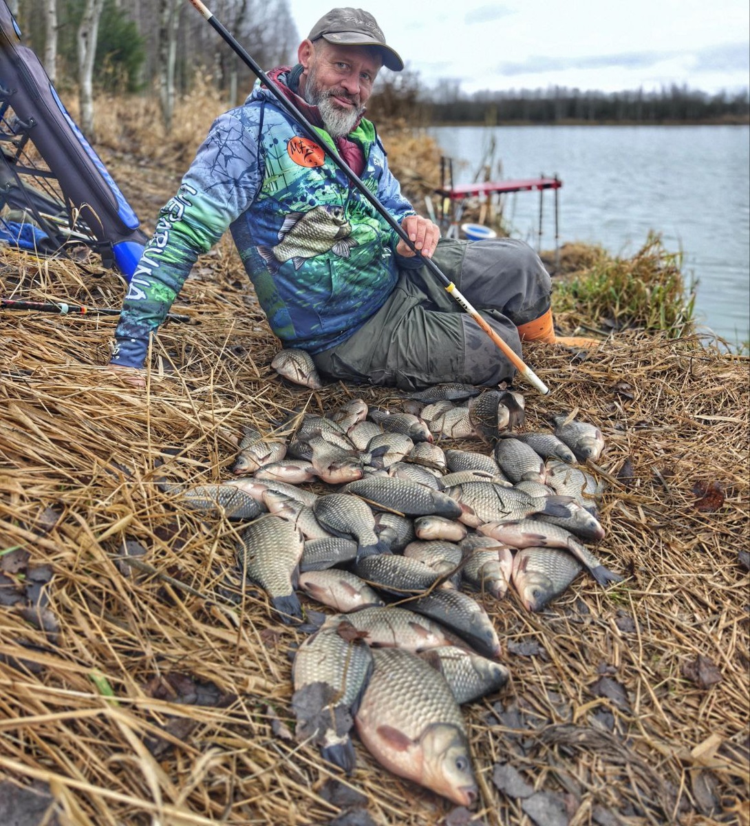 Привет, друзья! 8 ноября! А карась активен на многих прудах, да еще и активнее, чем летом! Да, он клюет аккуратно, клюет не везде и не на всё, но он ловится. И при этом мелкота, которая дико мешала ловить нормального карася летом - она уже, видимо, спать пошла. А вот рыба от 200г и выше - вполне себе бегает по водоему. Ну как бегает... Очень медленно ходит. По сравнению с летним периодом, когда он реально носился по водоему и через пару минут после попадания в воду ароматного теста, тут же дно начинало пузыриться от толпы карасиков. Сейчас иначе. Точку выкармливать приходится долго. Последние рыбалки на это требовался минимум час. Но когда рыбка подходит... Мелочи нет, нормальный карасик ловится, хоть и аккуратно. Но, из за отсутствия бешеной мелкоты, крупному есть время найти насадку и спокойно потрапезничать. Пару недель не был на этом водоеме. Обычно он уже замолкает к концу октября. Надо было проверить и расчет был на пяток карасиков. Такой улов я прогнозировал. Теста замешал совс