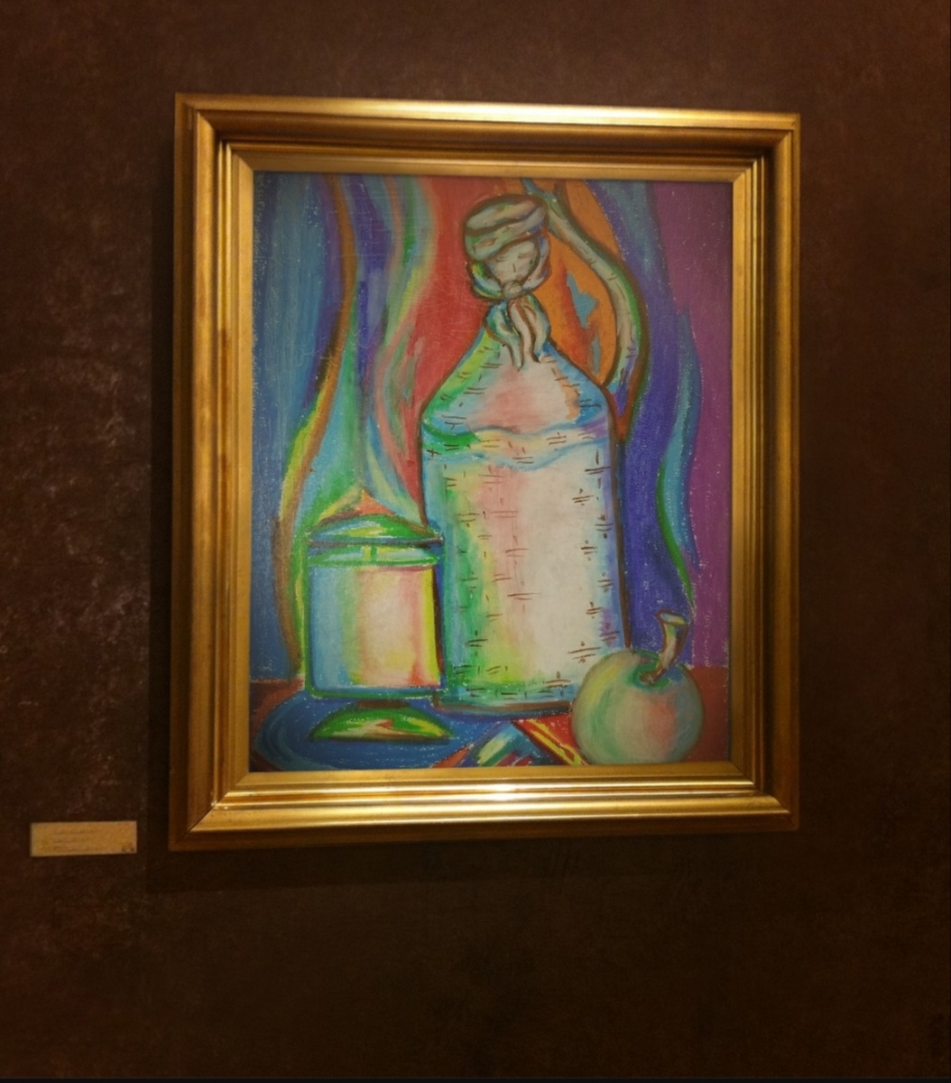 С октября месяца по субботам хожу на занятия для взрослых по художественному рисунку. На первых занятиях "набивали" руку, делая рисунок карандашом. Забавно. Пыталась брать пропорции на карандаше, отмечать на листе, как учили... Изображать светотени... Чайники, кувшины, утюги... У внучки получалось лучше... 😊 Вчера взяли масляную пастель для работы... и... сказать, что я была в шоке, значит ничего не сказать... Писали декоративный натюрморт. Можно нарушать все мыслимые и не мыслимые правила и границы, заменять вещи на постановке.... Был просто взлом мозга! Мало того, что эта пастель ложиться на бумагу слоями, липкими, так она еще и пачкается... 🤦 Внучке, опять же, все удалось с первого раза. Учитывая возраст, 11 лет и мой, почти 59... Делали мы разные постановки... Дома рискнула выйти из рамок и, взяв в руки мелки, получила следующее... Фонарь "включила", зажгла типа того... Развлекалась как могла...🤣🤣🤣 Как то так... На следующем занятии, в субботу, будем снова рисовать