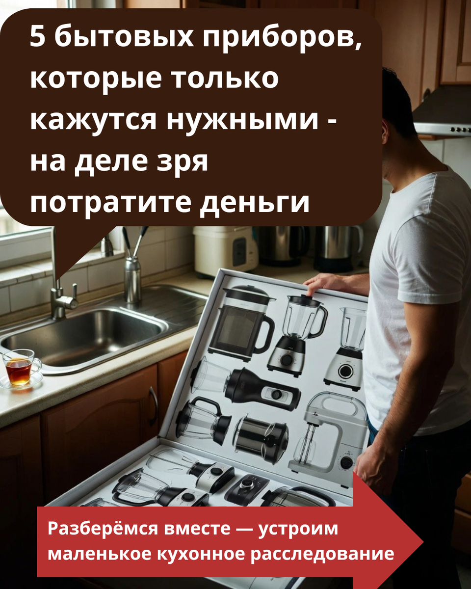 Знакомо? Стоишь в магазине, смотришь на блестящую технику: "Вот оно! То, чего не хватало на кухне!" Первые пару дней - восторг. А потом коробка уезжает на полку, где лежат "вещи, которые вдруг пригодятся". Почему мы так ведёмся на красивые обещания техники? 🤔 Разберёмся вместе - устроим маленькое кухонное расследование. 🔍 1. Йогуртница Мечтали о "домашнем йогурте без добавок"? Реальность: сто баночек, термометр, крышечки и гора посуды. Через неделю энтузиазм тает, а йогуртница пылится в шкафу рядом с формами для мороженого. 🔍 2. Яичница-мейкер Идея: быстро и без масла. Реальность: долго и неудобно. Пока достанешь, прогреешь и потом вымоешь - на сковородке уже готов завтрак. 🔍 3. Соковыжималка Покупается с мыслью "начну новую жизнь". Но после третьего апельсина приходит осознание: фрукты уходят килограммами, а сока - на глоток. Мыть её - отдельное приключение. 🔍 4. Смарт-чайник Он подключается к Wi-Fi, требует приложение и обновления. А ты стоишь рядом и думаешь: "А может,