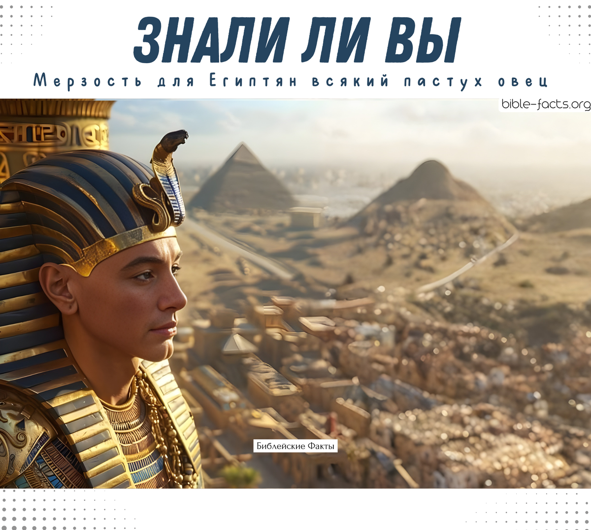 Знали ли вы, что во времена Иосифа пастухи были “мерзостью” для египтян? «Ибо мерзость для Египтян всякий пастух овец.» Быт 46:34 Египтяне гордились своим оседлым образом жизни и плодородной землёй Нила. А пастухи, особенно кочевники, казались им грубыми, нечистыми и относились к низшим слоям общества. Но главной причиной было то, что некоторые животные, например овны, почитались священными, поэтому пастухи, разводившие их на убой, вызывали особую неприязнь. Из уважения к своим богам и традициям египтяне не ели вместе с пастухами: «И подали ему особо, и им особо, и Египтянам, обедавшим с ним, особо; ибо Египтяне не могут есть с Евреями, потому что это мерзость для Египтян.» Быт 43:32 • Телеграмм канал (Библейские факты) • Больше интересных Библейских Фактов (VK) • Библейские факты (сайт)