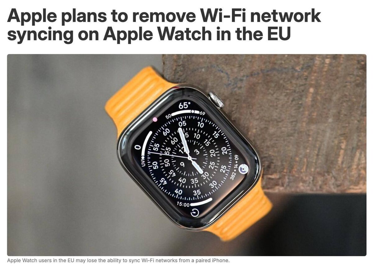 📰 Apple отключит синхронизацию Wi-Fi между iPhone и Apple Watch в Европе