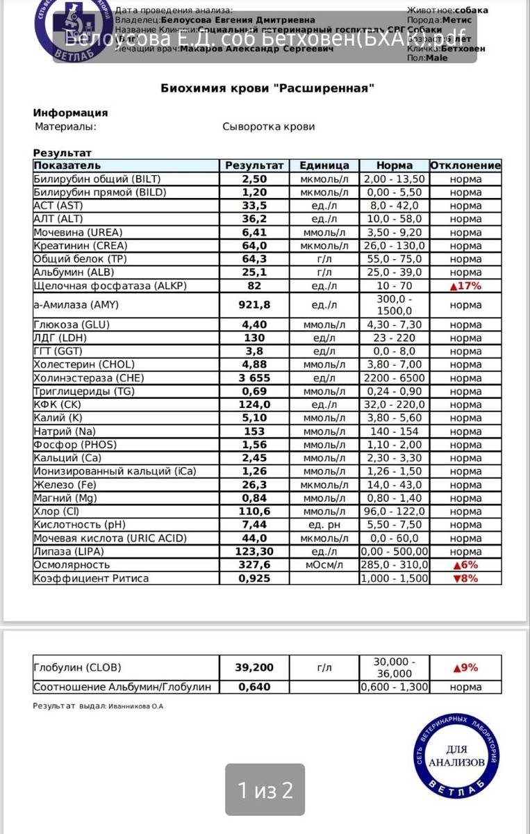 По анализам у Бетховена все в норме