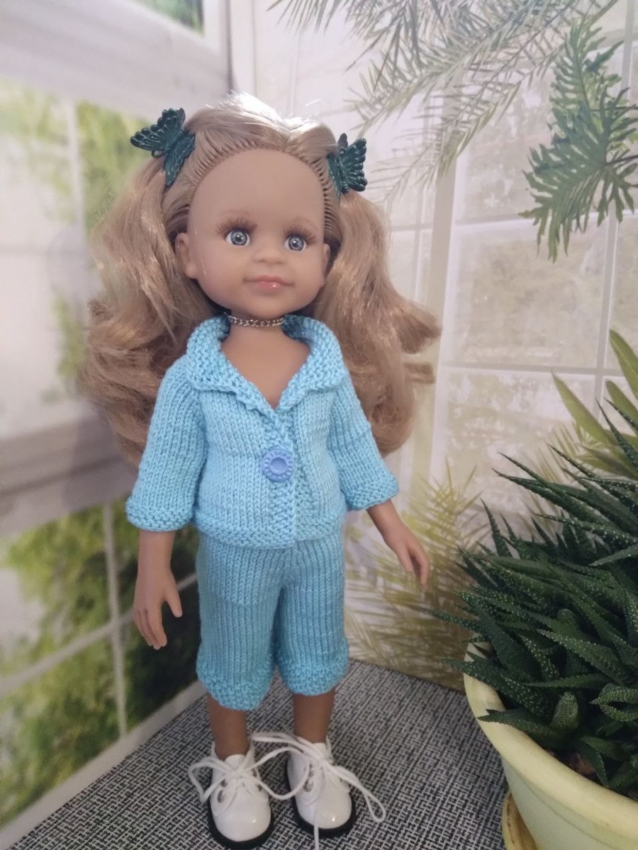 Всем привет! Сегодня я к вам с фоточками и извечным вопросом, Что делать?)) Навязалось опять немало. В первую очередь наряд демонстрирует Симона, и это бриджики к жакетику, который и булочке мини подошел, если помните, как пальтишко. И еще я все-таки пересчитала листики и юбочку для булочки-мини. Вот такая она у меня теперь стоит. Начала ей вязать то ли пальтишко, то ли жакетик по тому самому описанию. Поглядим, что выйдет. И самый главный вопрос. Что вам описывать в первую очередь, костюмчик для Паолы или пересчет для мини-булочки? Всем хорошего настроения и спокойной осени!