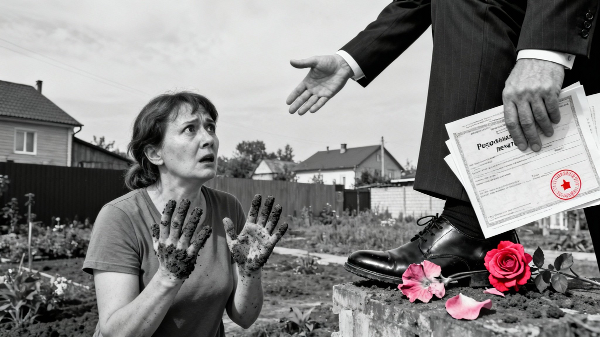 Настал день икс. Виктор Семенов приехал ровно через неделю. Не один, с двумя крепкими парнями в спортивных костюмах. Я вышла к ним навстречу. Одна. В руках у меня была не папка с документами, а тяжелая лопата. Я вонзила ее в землю у своих ног.