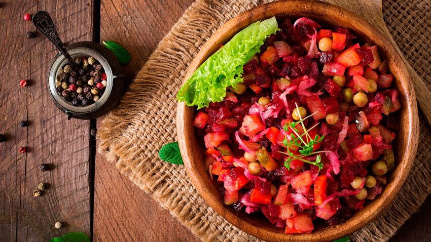 Этот рецепт поможет вам приготовить вкусный и яркий винегрет — идеальный салат для любого стола. Ингредиенты (на 4-5 порций): Овощи: * Картофель вареный — 4-5 шт. (средних) * Свекла вареная — 1 шт. (крупная) * Морковь вареная — 1 шт. (средняя) * Соленые огурцы — 2 шт. * Яблоко (кисло-сладкое) — 1 шт. (свежее или моченое) * Квашеная капуста — 100 г * Зеленый лук — 50 г Для заправки: * Масло растительное — 2-3 ст. ложки * Уксус (столовый 9%) — 1-2 ст. ложки (можно по вкусу) * Горчица — 1 ч. ложка * Сахар — по вкусу (примерно 0,5-1 ч. ложки) * Соль, черный молотый перец — по вкусу Для украшения: * Укроп * Ломтики свеклы, свежего огурца или помидора (по желанию) Пошаговый рецепт Шаг 1: Подготовьте овощи Картофель, морковь и свеклу предварительно отварите в мундире до готовности (около 30-40 минут) и полностью остудите. Очистите их от кожуры. Очистите яблоко от сердцевины. Шаг 2: Нарежьте ингредиенты Остывшие и очищенные картофель, морковь, свеклу, соленые о