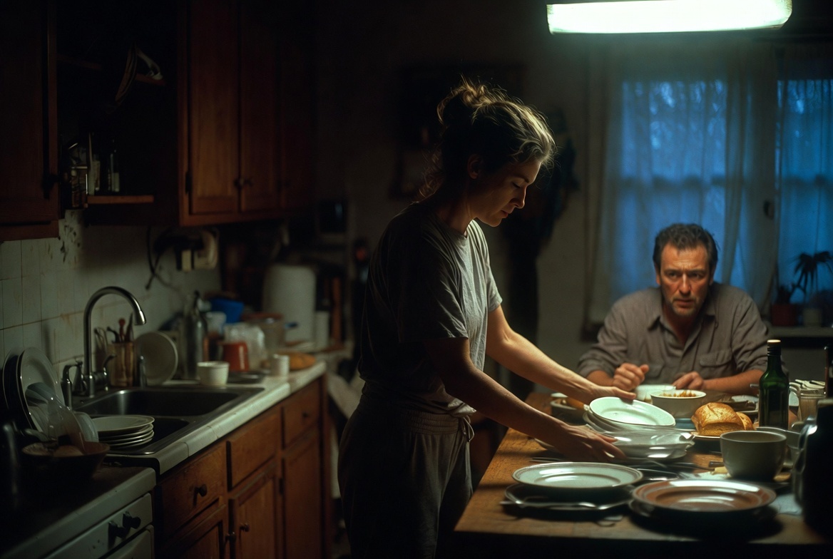 Наталья швырнула половник в раковину и вышла из кухни, хлопнув дверью. Володя остался сидеть за столом, явно не понимая, что он сделал не так.