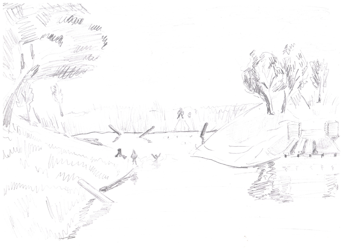 Летом я со своими друзьями много времени проводили на реке купаясь. Река находилась примерно в километре от деревни. Это очень узкая извилистая речка в некоторых местах очень глубокая а где-то настолько мелкая что её можно было перейти в брод. Раньше судя по всему по ней переправляли брёвна. Эти брёвна торчали в разных местах под разным углом, казалось что они сдесь уже очень давно. Эти стволы были очень гнилые с виду но так же сохранили свою форму и объём, не было и намека что вот они скоро переломятся. Нескончаемое количество рыболовных Крючков и блесен осталось на этих бревнах. На противоположном берегу имеется небольшая заводь на которой имеется какое-то строение из брёвен и досок, такое же старое как и те торчащие брёвна по всей реке. Что это такое было для меня до сих пор остаётся загадкой, может это мельница, может платина, пусть это так и останется каким то строением. Река по всей длине Илистая, у меня всегда вызывало отвращение когда я оказывался ногами в этом иле, мне хотелось поскорей выйти и отмыть ноги. Но то место где мы купались было песчано-глинистым, что на нашем берегу так же и на противоположном. В основной части реки росла осока, длинная и узкая трава которая как бритва резала и царапала тело если по ней пройти. Достопримечательностью в этой части реки был Дед который рыбачил на несколько удочек. Его удочки были на столько кривые на сколько это возможно, но его это никак не беспокоило. От сидел на крутом склоне в одном и том же месте, закидывал свои удочки из положения сидя издавая кряхтящий звук при каждом закидывании. А потом так же в сидящем положении распутывал леску снова и снова , методично и спокойно как шаолиньский монах не издавая при этом не капли матерного слова. Мы тоже периодически ходили на рыбалку к разным водоёмам нашей местности. Когда проходил слух что в каком то месте клюет жолтый карась или хорошая щука ,мы снаряжались и шли к этим рыбным местам, как бы далеко это не было.