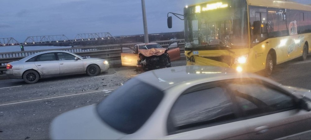 В ДТП с автобусом на Октябрьском мосту пострадал водитель иномарки