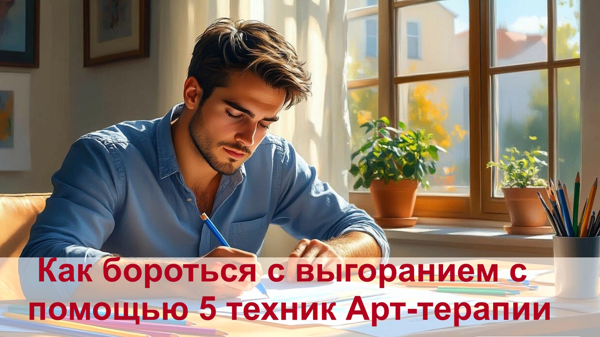 Выгорание начинается, когда человек долго находится в состоянии перегрузки на работе, дома, и перестает со временем чувствовать свои эмоции, кроме самых сильных. За счет такой нечувствительности он может работать без отдыха, откладывая его на неведомое лучшее время. Но оно никогда не наступает. Чтобы бороться с выгоранием, Арт-терапия предлагает свои техники для возвращения чувств и эмоций. Человек перестает осознавать чувства, но они никуда не исчезают. Они накапливаются, в затем выливаются бурными вспышками – гнева, злости, истерик. Поэтому важно вовремя замечать чувства и эмоции, они помогают направить свои силы на решение актуальных задач. (Для глубокой стадии выгорания, когда: «Я ничего не чувствую») Возьмите лист бумаги и карандаш. Не думайте. Просто закротей глаза и проведите линию, которая отражает ваше текущее состояние. Это может быть – волна, спираль, кружок. Теперь раскрасьте её цветом, который «звучит» в вашей голове. Не нужно пытаться рисовать красиво. Это не для искусств