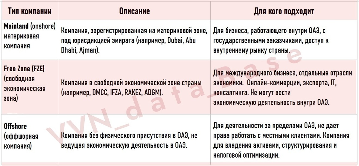 В ОАЭ существует три основных вида компаний (юрисдикций)