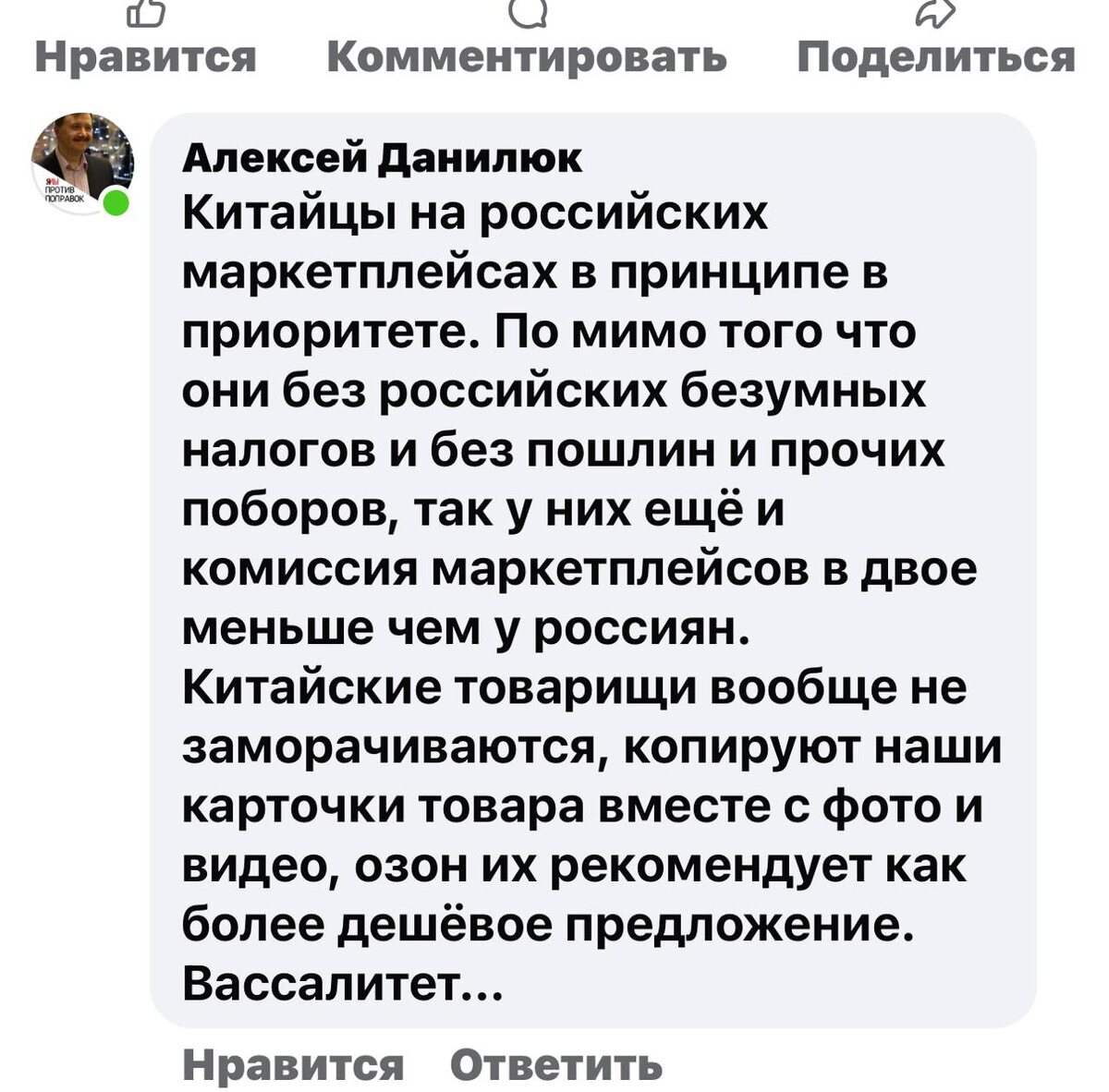Крупные покупки делаю именно на озоне из Китая. Подтверждаю - выгодно. И это не здорово. См. картинку - мнение подерживаю. Но мне как потребителю это очень выгодно. Русский ИТ бизнес